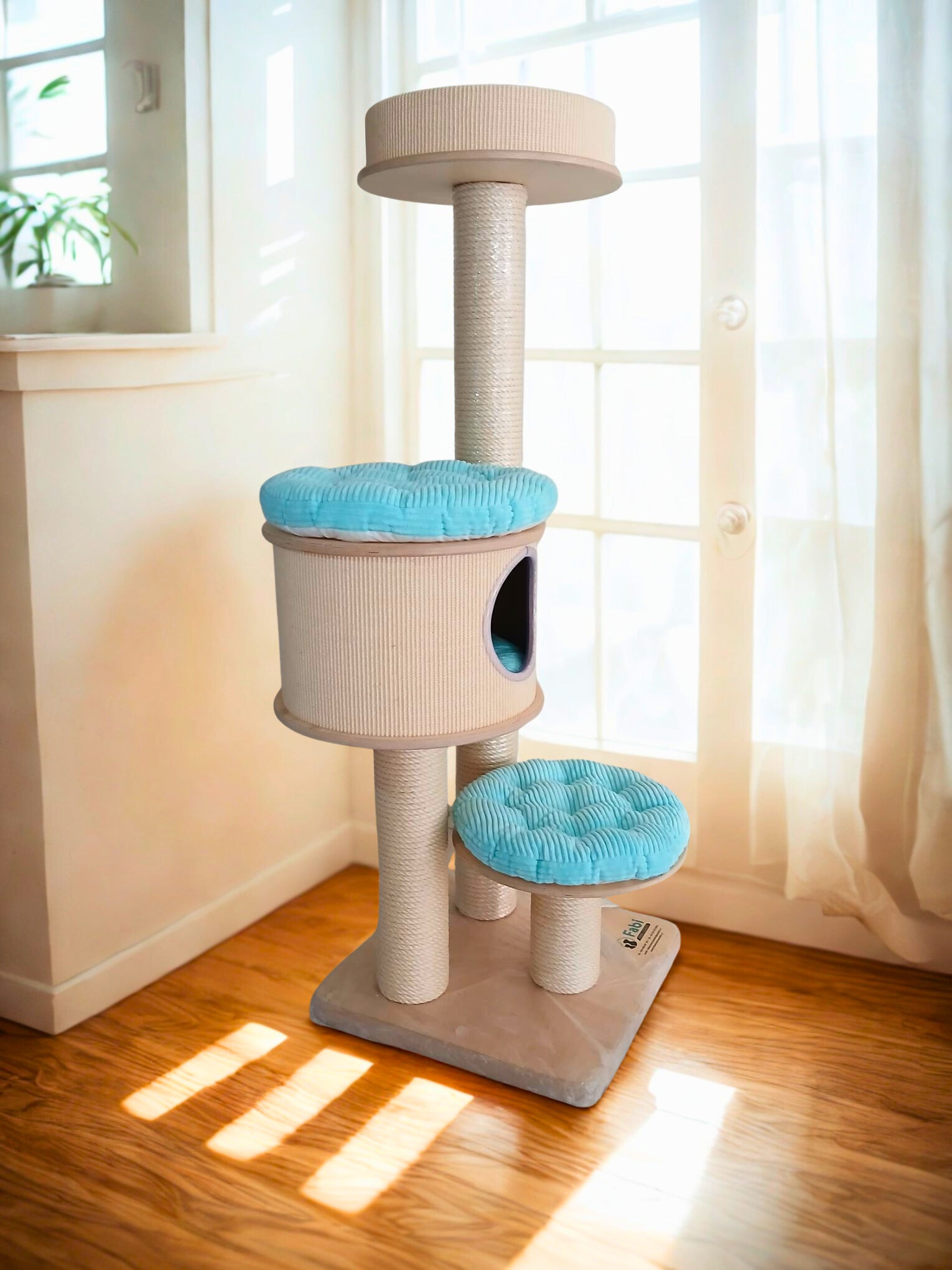 Un modello pensato per gatti di ogni taglia, dal cucciolo al più grande, che offre diverse aree di gioco, riposo e osservazione. Con il suo design elegante e la sua stabilità, questo tiragraffi diventa non solo il posto preferito del tuo micio, ma anche un complemento che si inserisce armoniosamente nell’arredamento di casa.