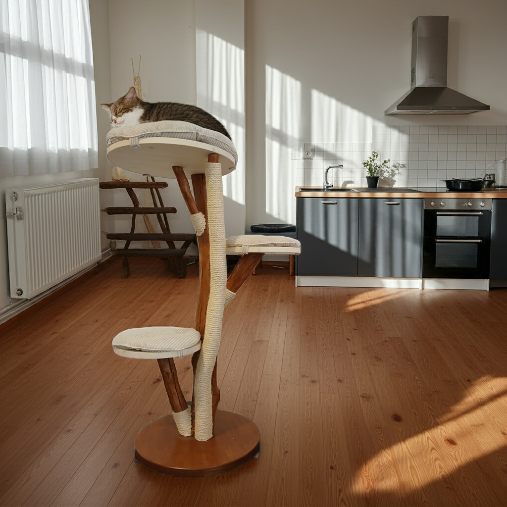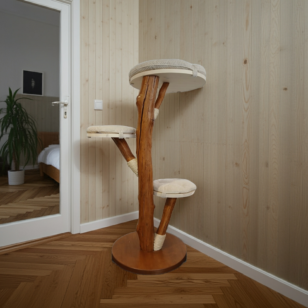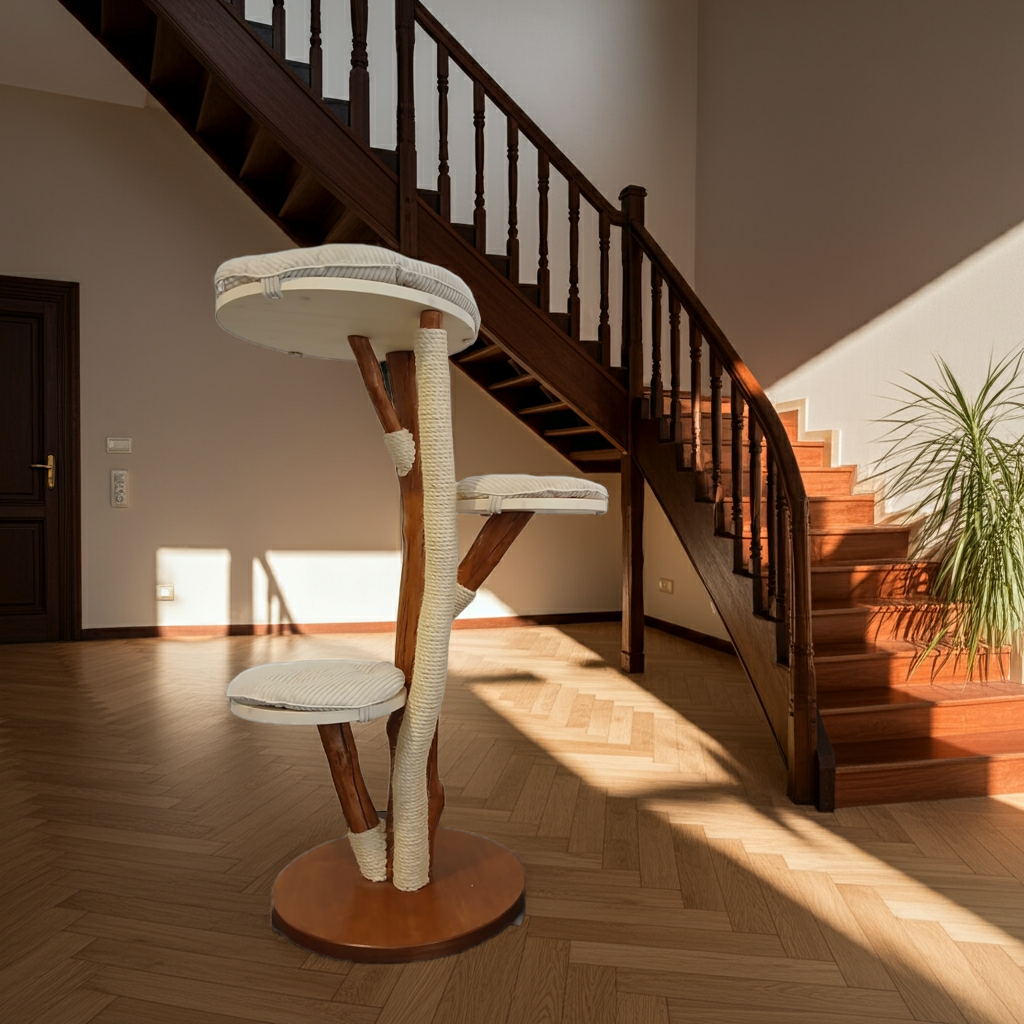 Un tiragraffi elegante e solido, realizzato artigianalmente in Italia con veri tronchi di faggio massiccio. La sua struttura naturale e robusta garantisce stabilità e durata nel tempo, rendendolo non solo un accessorio per gatti, ma un vero complemento d’arredo di pregio.